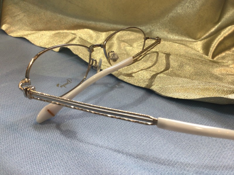 テンプルのラメ入りピンクのDOTプレートがワンポイント
